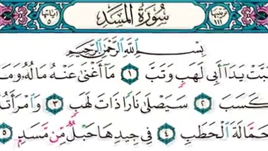 سورة المسد تبت يدا أبي لهب وتب تعليم القران الكريم