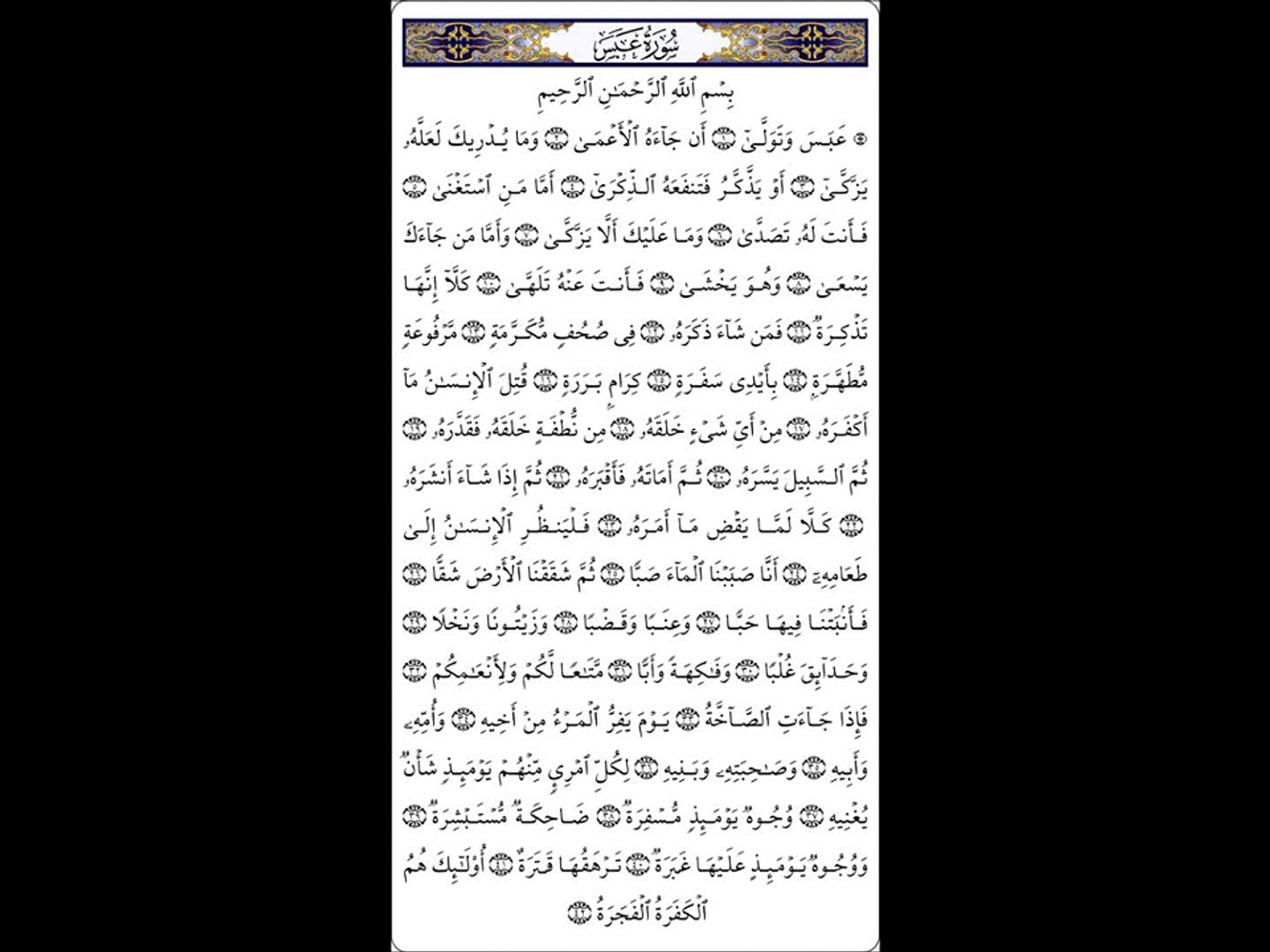 سورة عبس مكتوبة