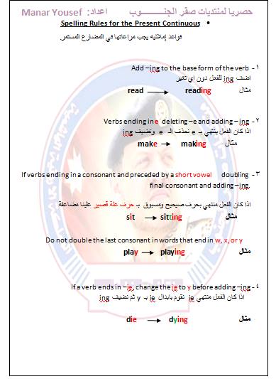 حصري وبالصور وملف شرح قاعدة Present Continuous تمارين للصف السابع منتديات صقر الجنوب