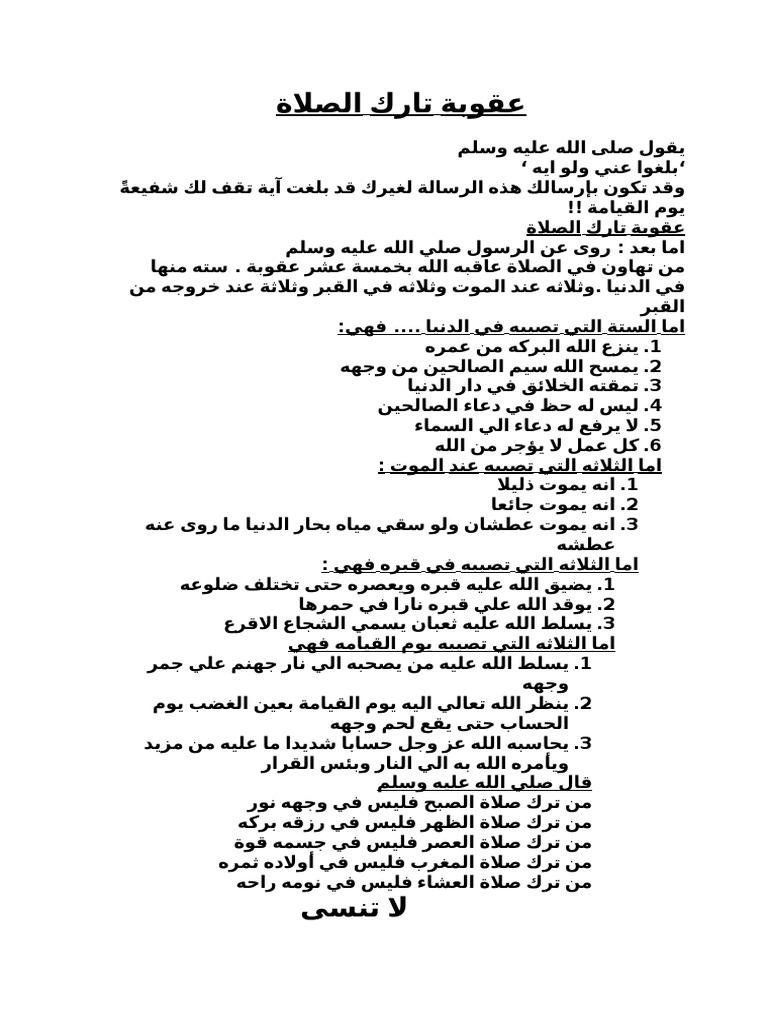 عقوبة تارك الصلاة On Twitter Http T Co Zhsrru9uer