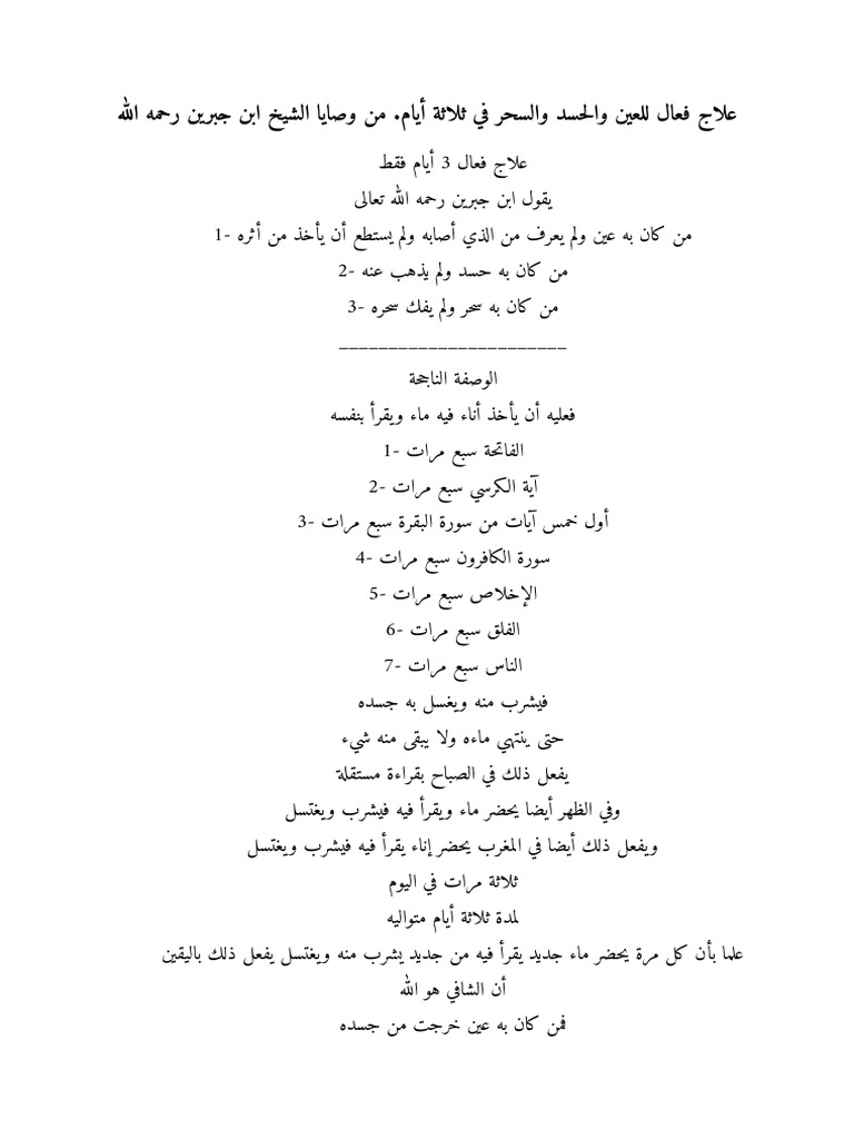 علاج فعال للعين و الحسد و السحر في ثلاثة أيام من وصايا الشيخ ابن جبرين رحمه الله فؤاد الشمالي